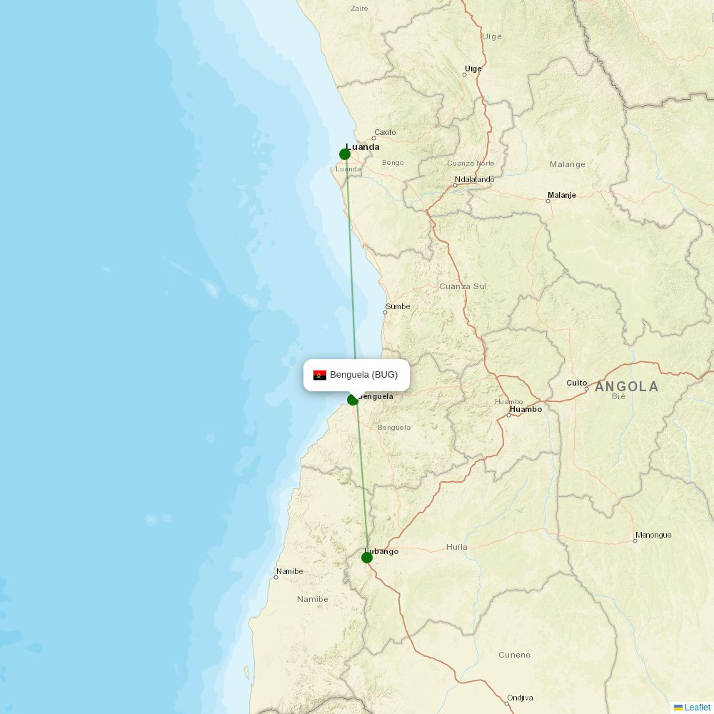 There are 0 scheduled passenger flights departing Benguela to 1 destinations in Angola today. The last flight today is leaving at 14:30